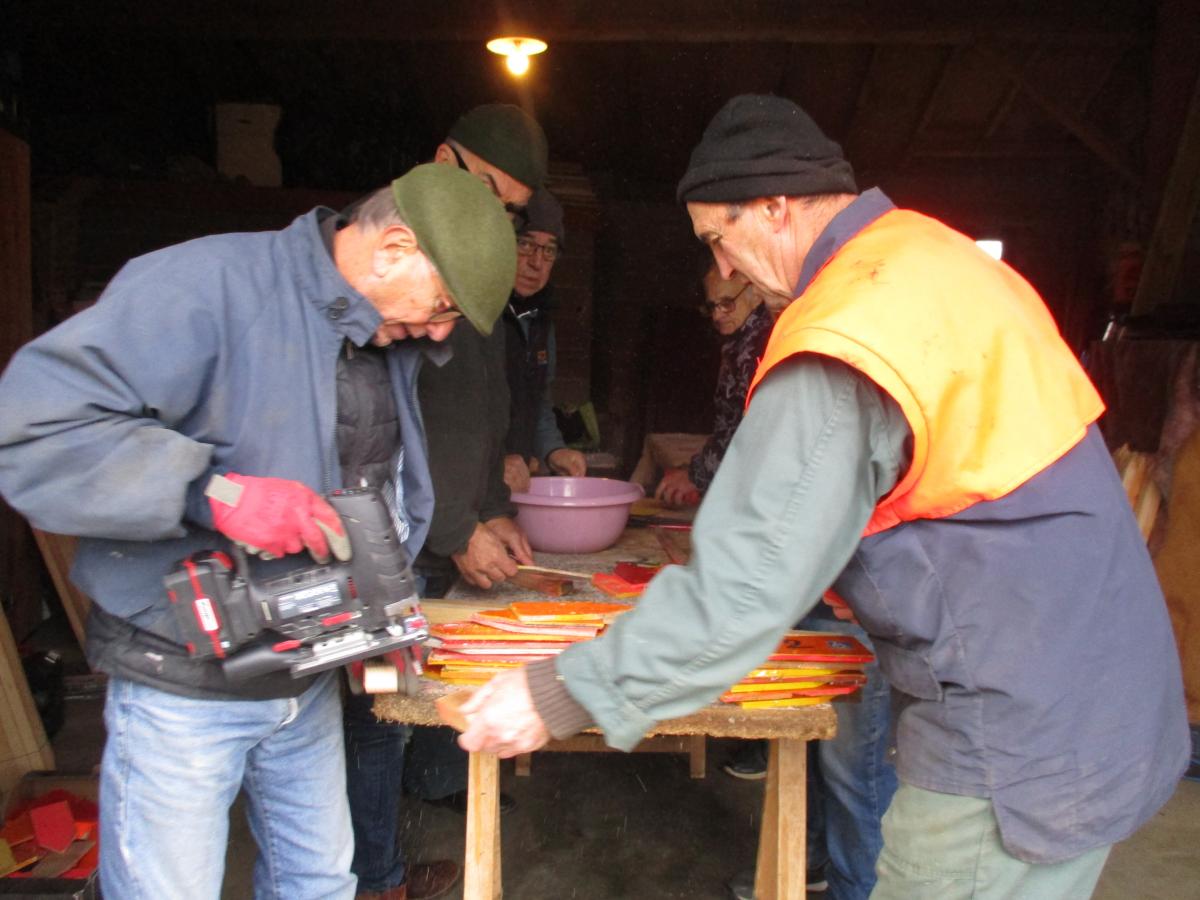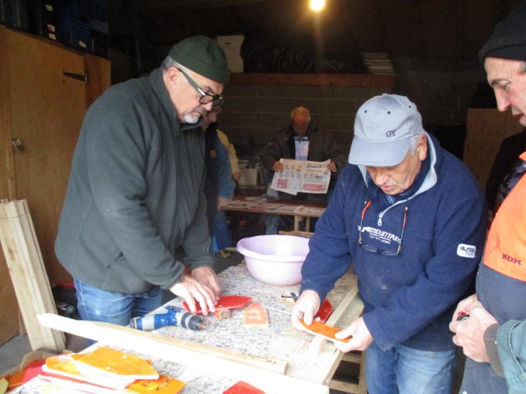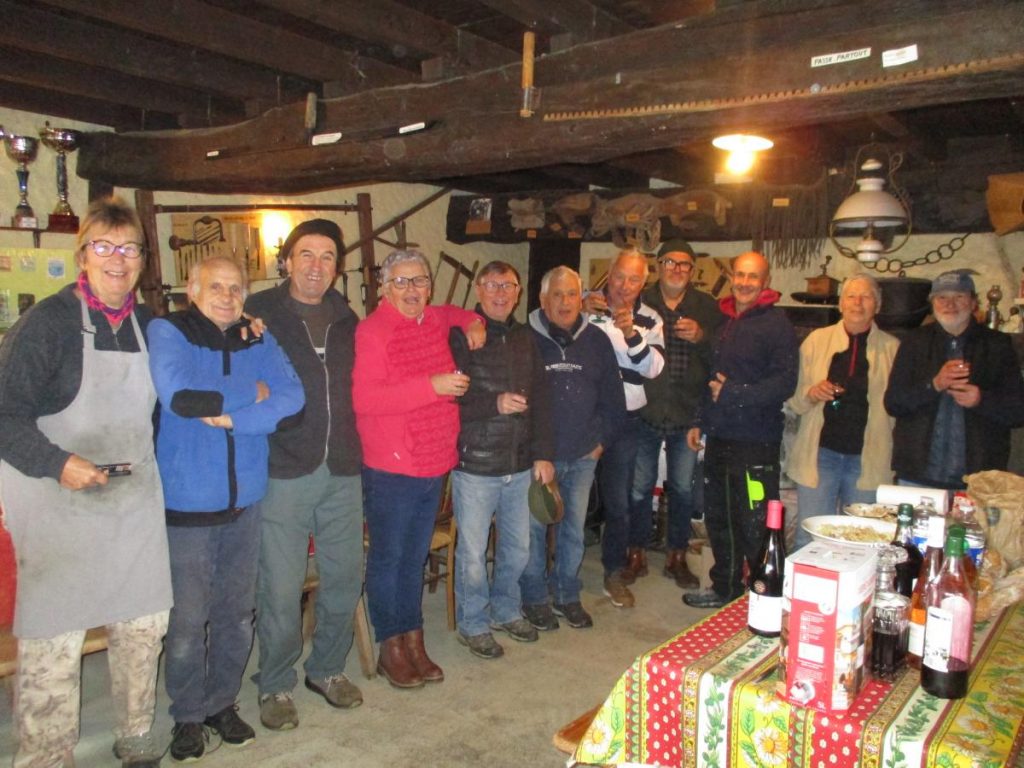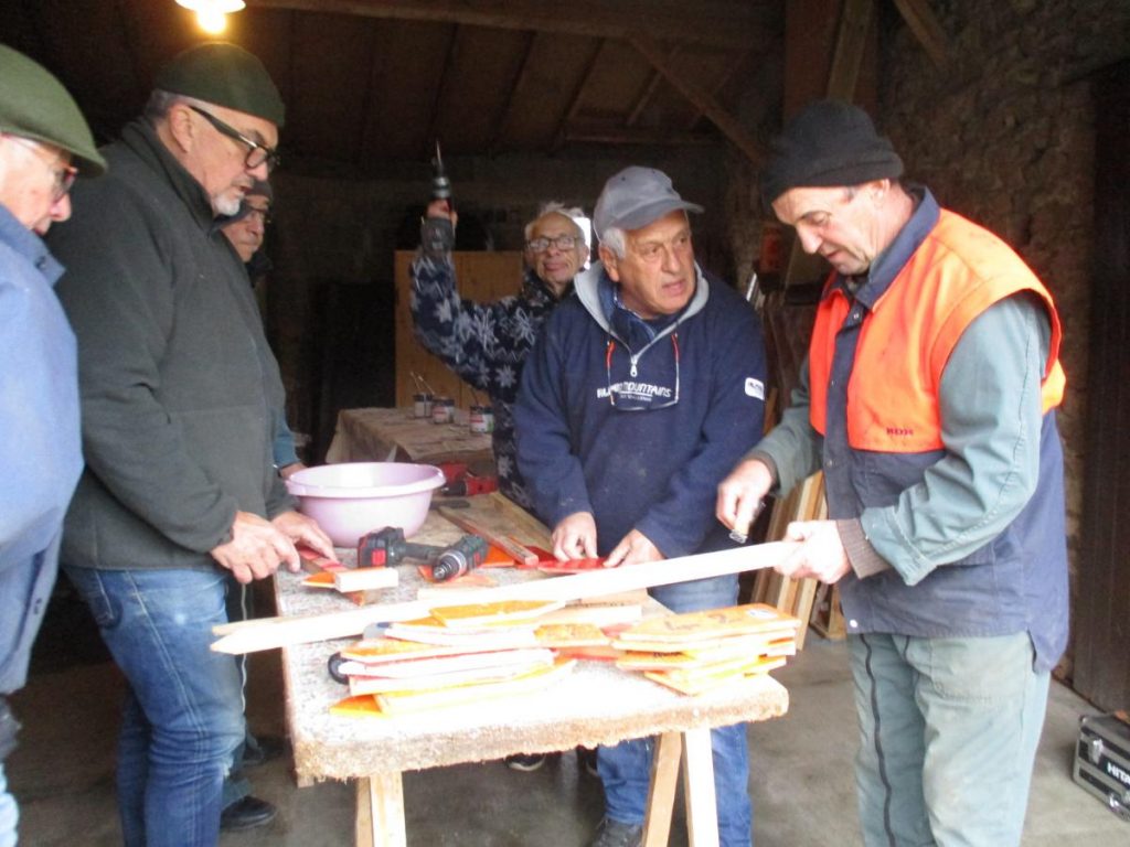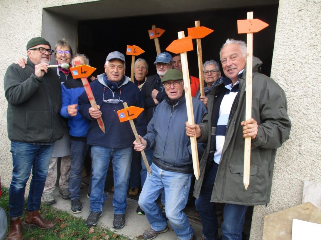 En prévision de la marche à but humanitaire du 13 septembre 2026, une corvée a été organisée le mardi 2 décembre afin d’uniformiser les balises nécessaires pour jalonner les nouveaux parcours de cette randonnée. Treize membres du club se sont retrouvés à Rochefort pour peindre environ 120 balises et graisser les plaques de cuisson des pâtés aux pommes avant de partager un casse-croûte convivial à la salle des Belettes
